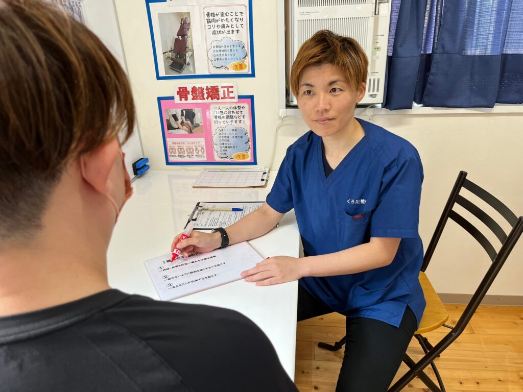 整骨院によっては、無資格者が施術を担当するケースもありますが、板付くろ川整骨院では国家資格(柔道整復師など)を持つ施術者がすべての施術を担当します。長年の経験を積んだ専門スタッフが、一人ひとりの症状に合わせた的確な施術を行い、痛みの根本からの改善を目指します。肩こりや腰痛、スポーツ障害、交通事故によるむち打ちなど、幅広い症状に対応可能。専門知識を活かした確かな技術で、患者様の健康をサポートいたします。博多で信頼できる整骨院をお探しの方は、ぜひ「くろ川院」へお越しください。お身体の不調や痛みを抱えている方は、お気軽にご相談ください。あなたの健康を全力でサポートいたします!