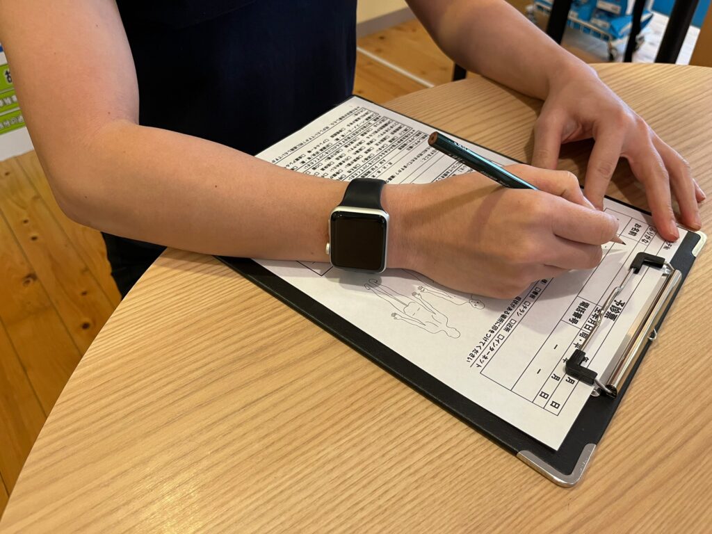 問診票に書かれた内容だけでなく、気になる症状や痛みを感じる箇所がございましたら、スタッフへ遠慮なく仰ってください。